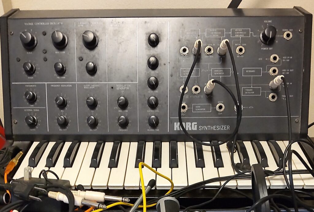 MS-10の入力端子に、リズムボックスやキーボードなど何でも入れて、サウンドを加工していました。